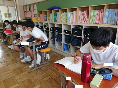 3年生は道徳の時間において、教科書「私たちの道徳」を使って、「今の私 中3の自分」について、現在の状況、未来への展望についてまとめました。