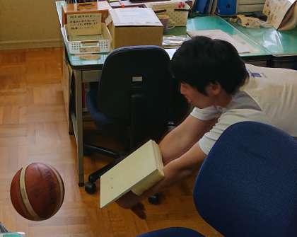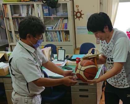 昨日に引き続き、用務員さんがバレーボール部の練習の際に使うレシーブ練習板を制作しました。顧問の石井先生が喜んでいます。
