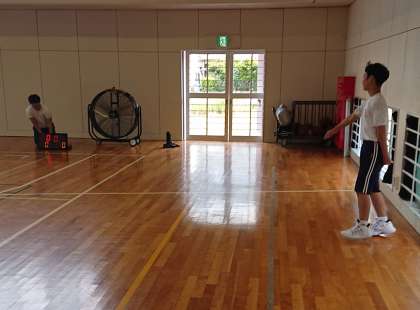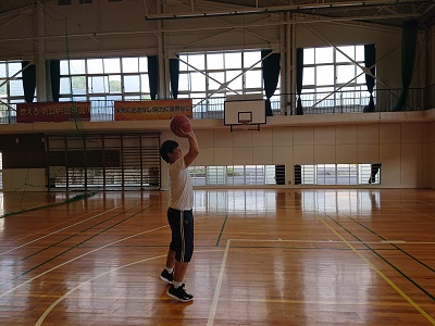 男子バスケットボール部の活動の様子です。シュート練習やダッシュなどの基礎練習を行っていました。