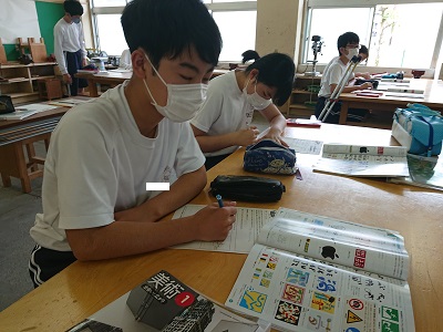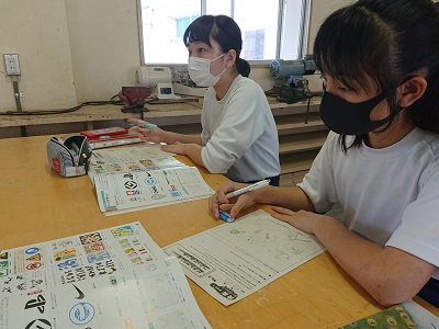 2年生は美術で「ピクトグラムをつくってみよう」という学習を行っています。生活の中で見かけるピクトグラムを参考に。オリジナルのピクトグラムを作成しました。
