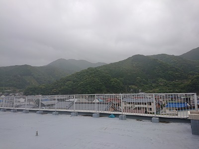 午前中、中学校上空も雲がかかり、霧雨が降りました。