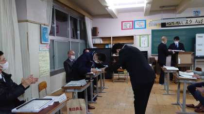 2、3枚目の写真は、第1回PTA運営委員会の模様です。PTA会長から前年度役員の皆様に感謝状が贈呈されました。前年度役員の皆様、ありがとうございました。