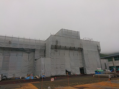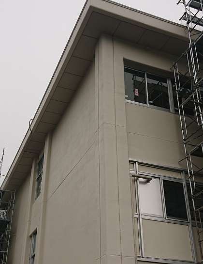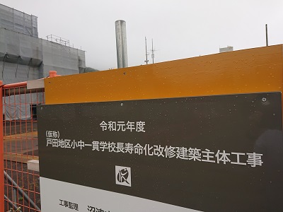 日々、戸田小校舎改築工事を進めています。小学校校舎東側の型枠が解体され、新しくなった外壁が顔を出しています。