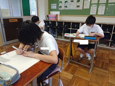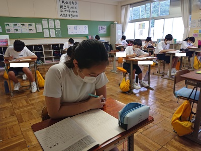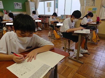 1年生の朝の潮風タイムの様子です。みんな集中して「天声人語の視写」を行っています。