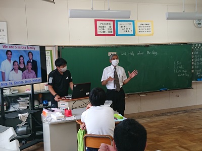 年生は言語科「英語の時間」の学習でした。今年度からALTがグレッグ先生となりました。グレッグ先生の自己紹介の後、質問タイムとなりました。