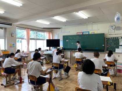 2年生は理科で「大地の様子」について学習しています。地層はどのようにできるのかを、教科書や映像を見ながらまとめました。