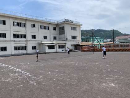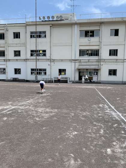 昼休みの様子です。グラウンドでは男子がテニスなどの活動していました。