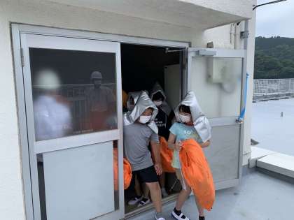 揺れが収まった後、小中学生が素早く屋上に避難しました。