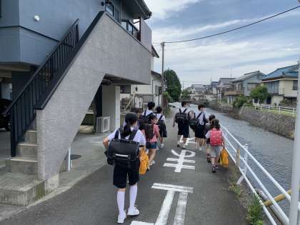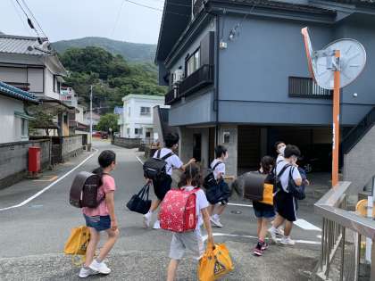 最終点呼をした後、地区別で集団下校をしました。中学生が小学生に通学路での危険箇所を優しく教えていました。