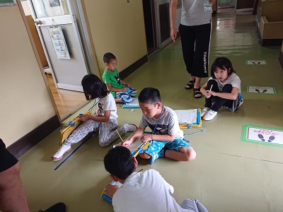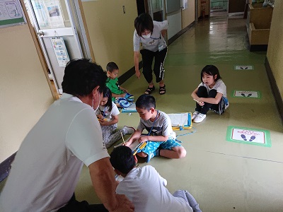 小学1年生が学校たんけんを行っていました。中学校職員室前も通りました。