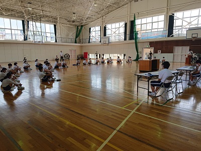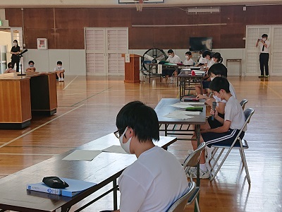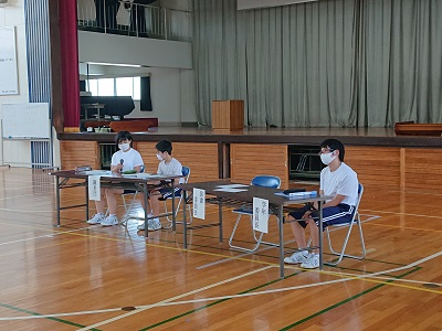 前期自治総会がスタートしました。議長団の3年生が上手に議事の進行をします。