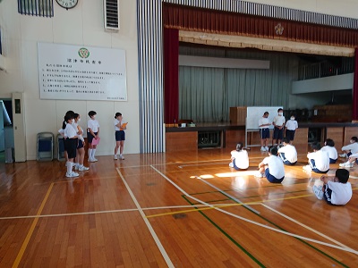 1・2年生は、合同で帰りの会を行いました。2年生が中心となって、「3年生を励ます会」の話がありました。