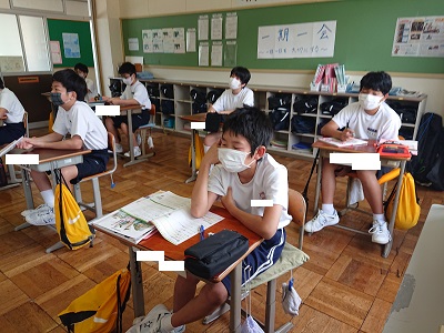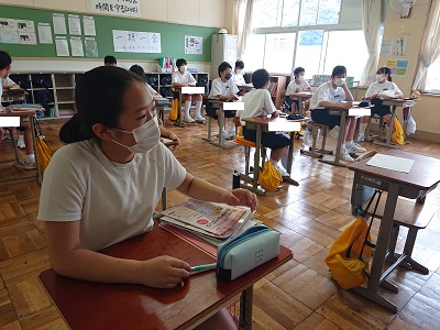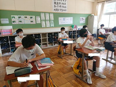 1年生は英語でPROGRAM2の学習をしていました。CDを使っての英会話を聞きながら、場面を思い浮かべました。