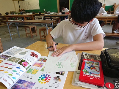 2年生は美術で「ピクトグラムをつくってみよう」という学習を行っています。生活の中で見かけるピクトグラムを参考に。オリジナルのピクトグラムを作成しました。