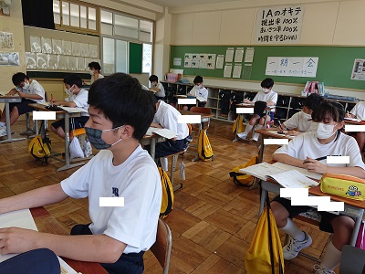 1年生は数学で「式の計算 −加法−」について学習しています。今日は、加法の交換法則や結合法則について理解した後、実際に問題に取り組みました。