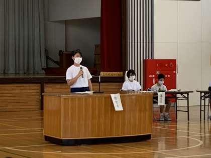 今日の活動提案は、環境委員会、図書委員会、学年委員会が活動提案を行いました。