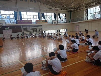 続いて図書委員長から活動提案がありました。みんな議案書に目を通しながら、話を聞いています。