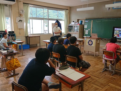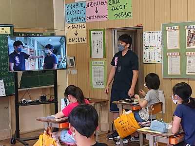 澤村先生と石井先生が小学生と授業を行っていました。