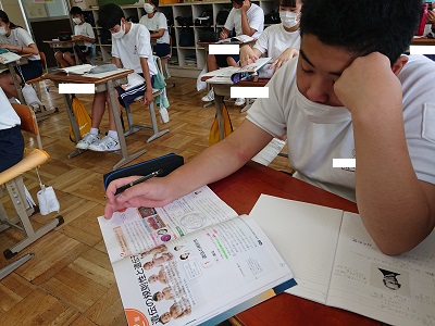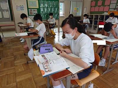 3年生は理科で、「遺伝の規則性と遺伝子」について学習をしています。今日は、「有性生殖で親の形質が子に伝わるとき、どのような規則性があるのか」について、個々の考えをまとめていました。