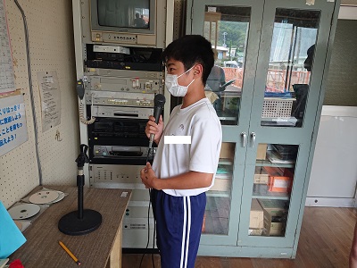 自治会本部役員が、昼の放送で自己紹介や前期計画、目標などを話しました。