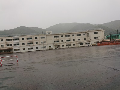 今朝の様子です。今日は朝から雨です。雨は時折強く降っています。