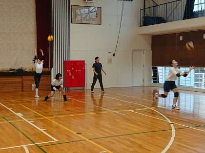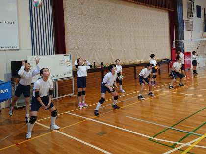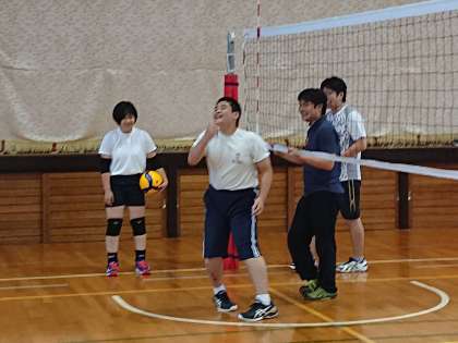 男女バレーボール部の練習の様子です。男女キャプテンを中心に練習をしています。