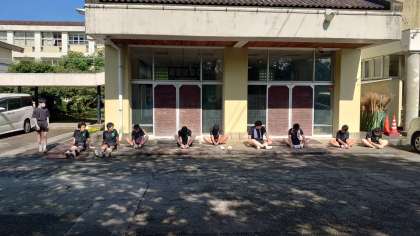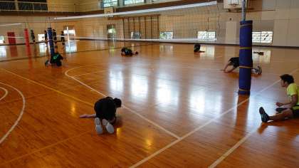 男子バレーボール部は、長井崎中と合同チームを組んでいます。本日も長井崎中にて合同練習です。ウォーミングアップをしています。