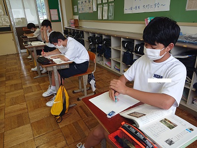 1年生は国語で「変わる動物園 若生謙二 著」という教材を学習しています。本文を読み返し、説明文の構成(序論・本論・結論)について確認しました。