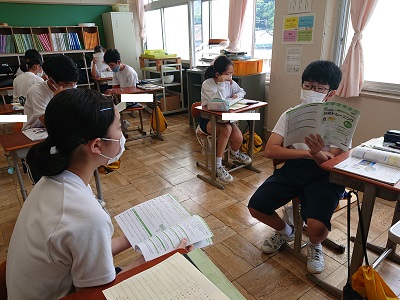 2年生は英語で未来形について学習しています。友達と予定や計画について話し合いました。