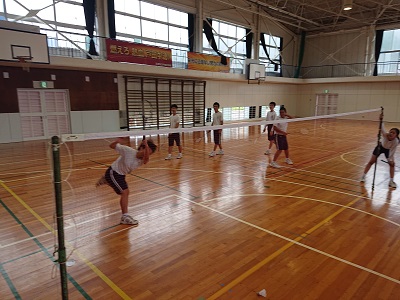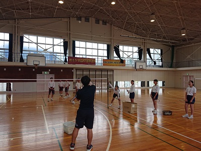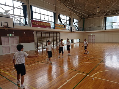 2年生は体育でバドミントンを行っています。ラリーが何回続くかをみんなでチャレンジしました。