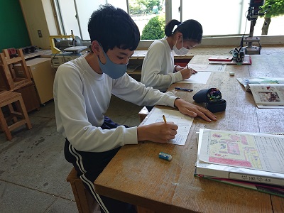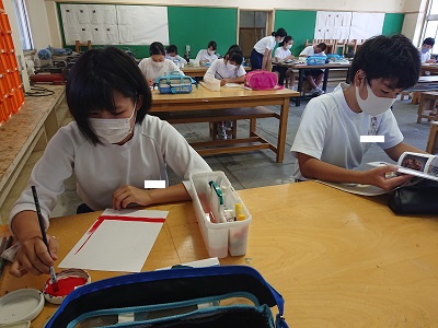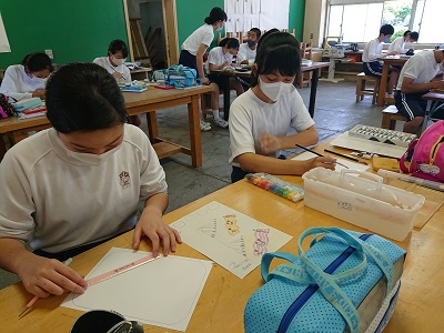 2年生は美術で「ピクトグラムをつくってみよう」という学習を行っています。生活の中で見かけるピクトグラムを参考に。オリジナルのピクトグラムを作成しました。