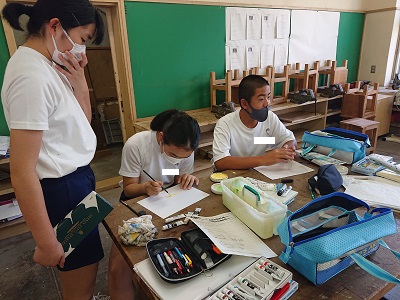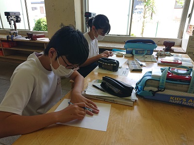 2年生は美術で「ピクトグラムをつくってみよう」という学習を行っています。生活の中で見かけるピクトグラムを参考に。オリジナルのピクトグラムを作成しました。
