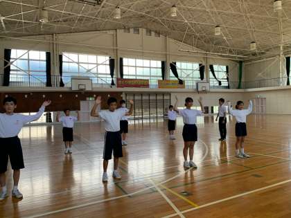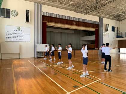 本日の昼休み、1・2年生の応援団員が、3年生を励ます会に向け練習を行っています。