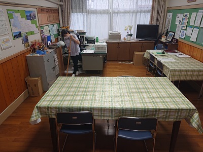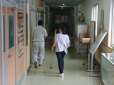 毎朝、用務員さんとスクールサポートスタッフさんが、校内環境整備に努めています。