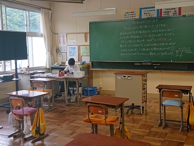 登校前に教職員が児童生徒のために準備をしています。