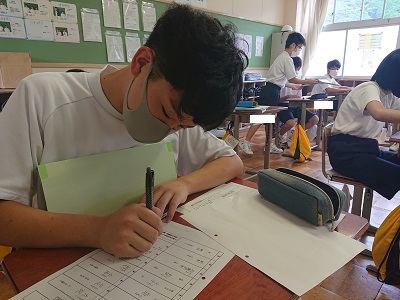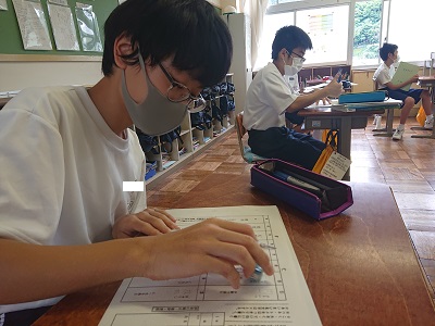 1年生は潮風タイム(朝学習)の時間において、来週に迫った1学期末テストの学習に取り組んでいました。