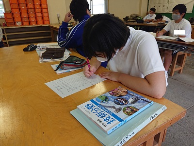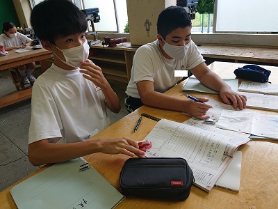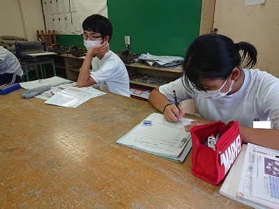 3年生は「小松菜の栽培」と同時並行で「金属 材料と加工」の学習もスタートしました。鋳造について確認した後、作品(キーホルダー)の構想を立てました。