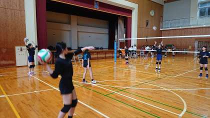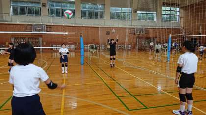 女子バレーボール部の様子です。みんなで呼吸を合わせてアップをしています。