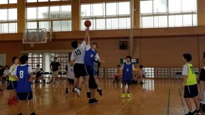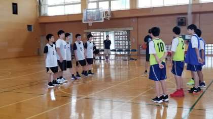 男子バスケットボール部の練習試合の様子です。合同チームを組む沼津第一中の選手とも息がぴったりです。