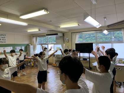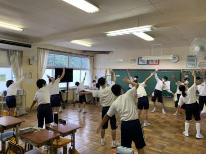 昼休みに「3年生を励ます会」の練習を行いました。みんな頑張っています。