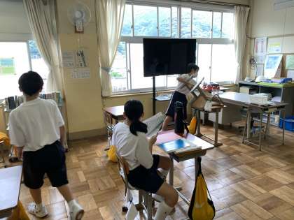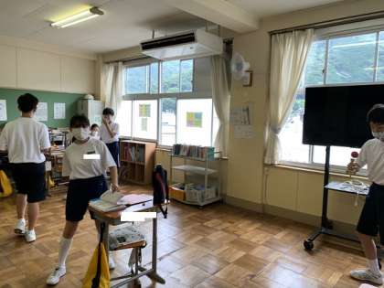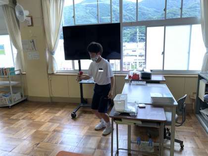 1年生の昼休みの様子です。1年生に「けん玉名人」がいます。
