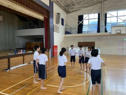 本日の6時間目に体育館で「ソーラン伝授」を行いました。戸田中学校の伝統として、2年生から1年生に「戸田中ソーラン」を指導します。