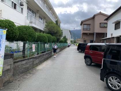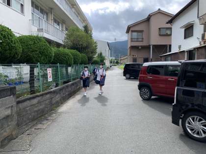 登校の様子です。久しぶりの太陽で、生徒たちも大喜びです。