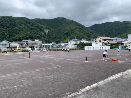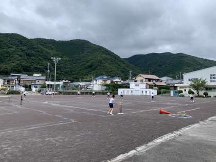 2年生は体育でベースボール型の学習を行っています。打撃練習を行った後、ゲームを楽しみました。
