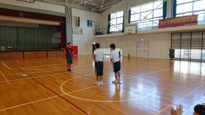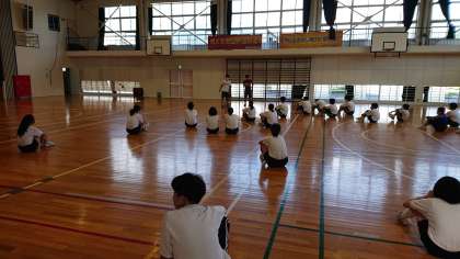 2年生と1年生が、合同で「3年生を励ます会リハーサル」をしています。本番が楽しみです。