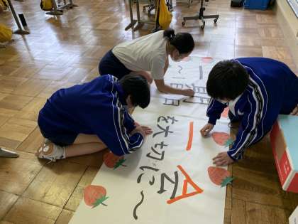 1年生は学級目標掲示の作成しました。きれいに配色しています。