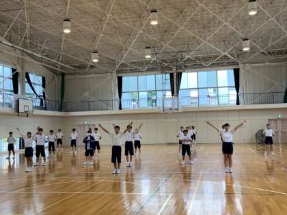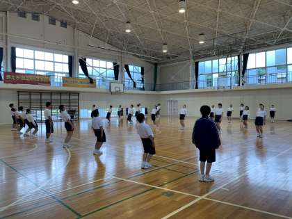 2年生が中心となって1年生を交えて、合同で「3年生を励ます会リハーサル」をしています。本番が楽しみです。
