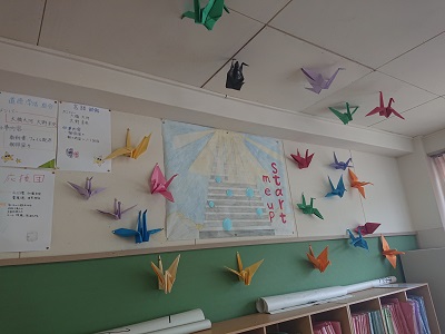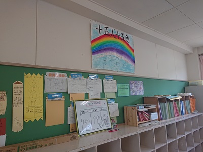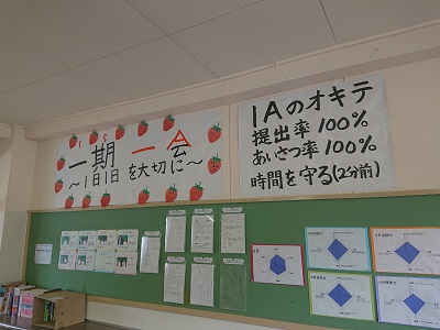 各クラスの教室背面に学級目標が掲示されています。どの学級も特色がでています。