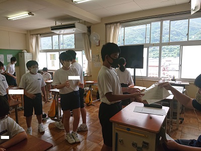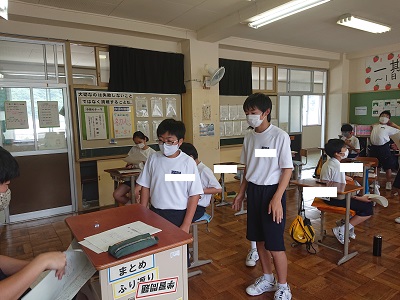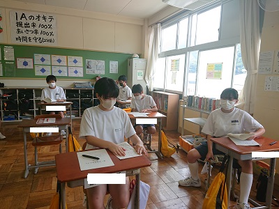 1年生は国語で期末テストの返却とテスト解説がありました。