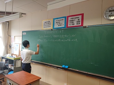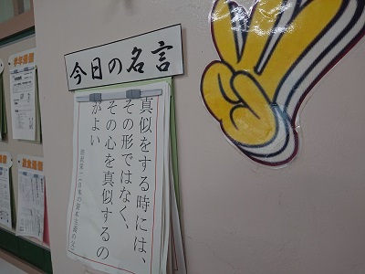 各クラスには、学級担任が思いを込めて用意した「黒板メッセージや今日の名言」が掲げられています。朝早くから学級担任が準備しています。